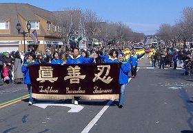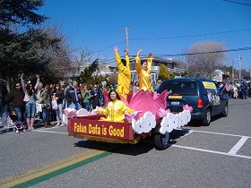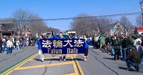 长岛最东部莫泰克镇圣派翠克节游行中的法轮功队伍 |