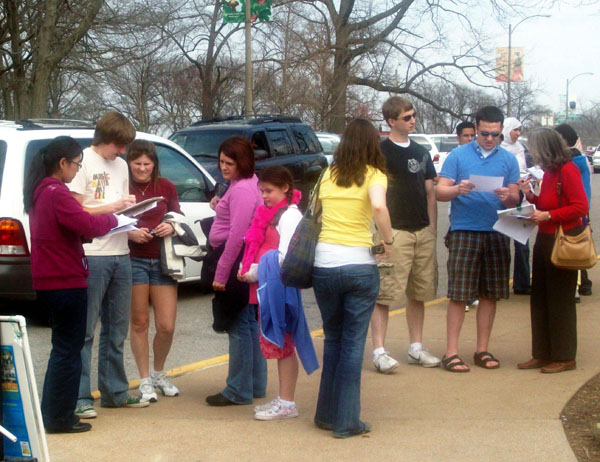 法轮功学员在圣路易斯市动物园旁征签的过程中,很多人停下来耐心聆听这些发生在几个母亲身上的迫害经历,他们对迫害感到震惊,纷纷签名呼吁营救这些被非法关押的母亲、制止中共对法轮功学员的迫害。两天时间里,近千人在呼吁信上签名,表达他们对正义和人权的支持。
