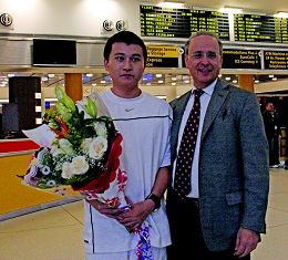 多名纽约法轮功学员自发带着鲜花到机场迎接这位历经迫害和魔难、仍坚持信仰真善忍的少年法轮功学员。