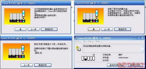 1、电脑提示:对于因使用再填充墨盒而导致的打印机故障损坏,canon将不承担任何责任使用填充墨盒被记录,继续打印吗? 否 是 我们选择“是”。