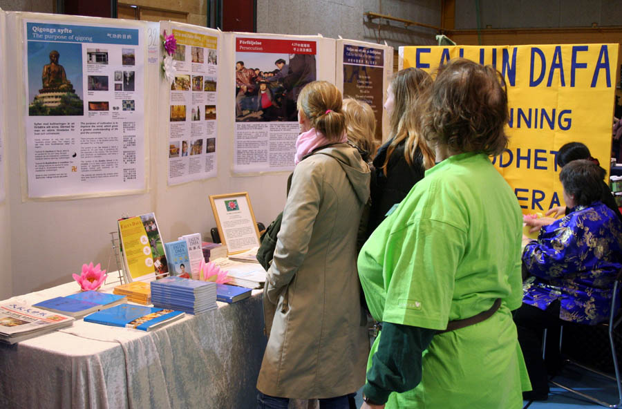参展期间,法轮功作为一个来自东方的传统修炼功法,以其功法简单易学,能高效改善身体和精神健康的神奇功效,吸引了众多参观者的目光。展位前不时地挤满了人,驻足观看功法演示、法轮大法真相图片,并和学员交谈。在了解了什么是法轮功以及发生在中国的迫害真相后,人们都高兴的接过相关资料。不少人购买了法轮功书籍以及影音资料,并打听具体的炼功点地址,对法轮功修炼表示出极大的兴趣。