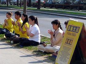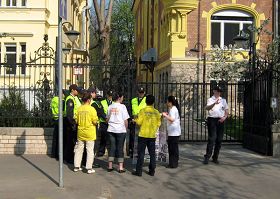 ![]() 二零零九年四月十一日,匈牙利法轮功学员在中共使馆前和平反迫害。 |