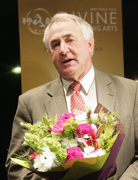 ![]() 图文巴副市长安东尼奥(Cr Paul Antonio)伉俪出席观赏神韵,并在酒会上献花给出身图文巴的神韵舞蹈演员宇宁 |
