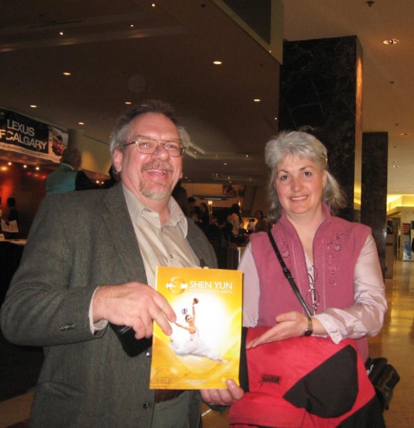 卡尔加里教育局艺术专家莱斯利(Leslie Yeates)带领四位芭蕾舞学生与她们的教师,十二日晚上观看了神韵巡回艺术团在卡尔加里的演出,她深深陶醉于中国古典舞纯善纯美的氛围里。她赞赏说:“富丽壮观,舞蹈雍容华贵,服装鲜艳迷人。”