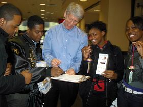 ![]() 征签过程中向学生们介绍法轮功真相 |