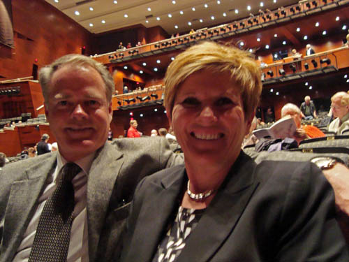 ![]() Spruce Grove市长胡斯顿(Stuart Houston)与夫人第二次观看神韵,并赞叹:“演出确实杰出!” |