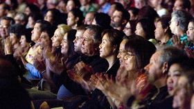 ![]() 专注观看神韵演出的檀香山观众 |