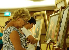 担任此次美展导览工作的张先生向观众介绍了美展的意义:这次美展的作品是由来自世界各地修炼法轮功的多位著名画家集结而成,他们把修炼“真、善、忍”的美好藉由画作表达出来,同时也把法轮功在中国大陆受到的迫害透过画面揭露出来,让更多的人知道目前大陆还有很多法轮功学员仍在遭受不该承受的痛苦。