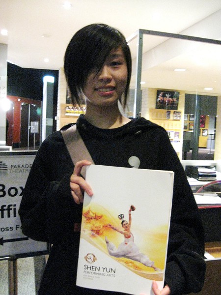 陈女士是到澳洲来看望读高中的女儿,她通过在这里居住的亲戚知道神韵来澳巡演。她说在国内没有机会看到这么好的演出,回国后一定会把这么美好的感受告诉她的亲朋好友们。