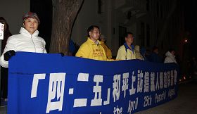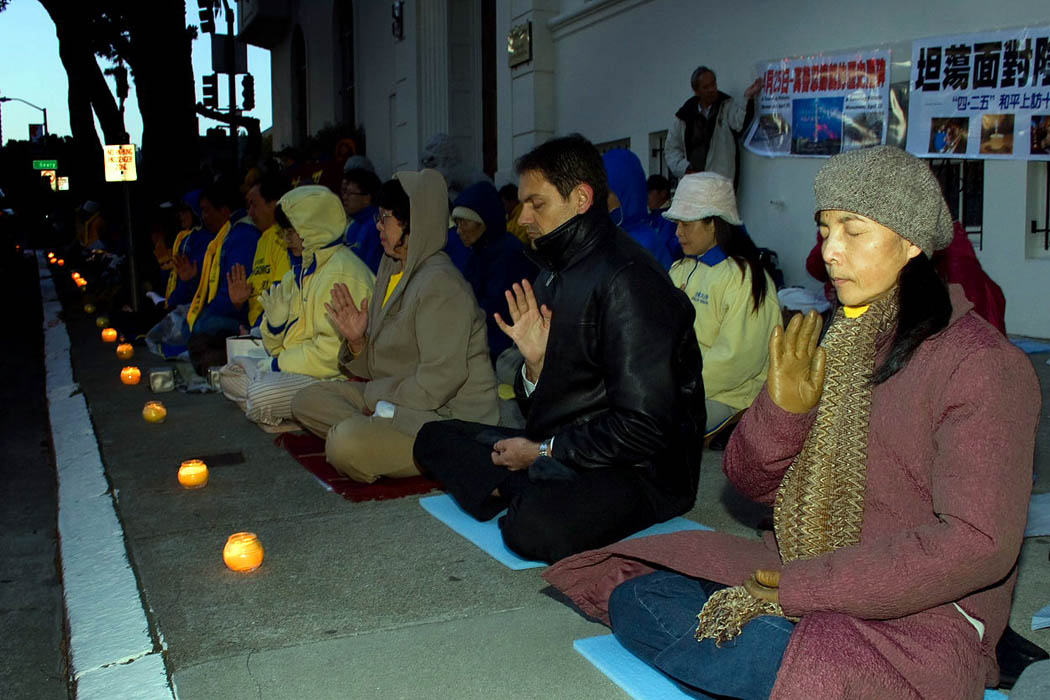 ![]() 法轮功学员在旧金山中领馆前,呼吁制止迫害 |