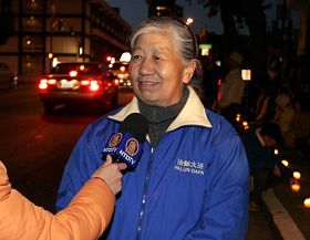 参加活动的湾区法轮功学员张虹女士表示,“四•二五”是个值得纪念的日子,这是中国民众第一次用和平理性的方式来表达一个正当的诉求。法轮功学员希望告诉人们,法轮功学员是好人,是修真善忍的。