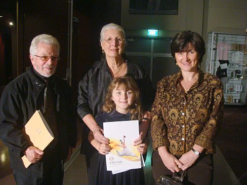 ![]() 歌剧艺术总监莫里斯(左一)偕妻子玛吉(左二)、女儿维吉尼亚(右一)和外孙女伊莎贝拉一同观赏了神韵晚会 |