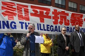 ![]() 中国人权网主席、大赦国际协调人Michael Craig在纪念“四·二五”十周年集会发言。 |