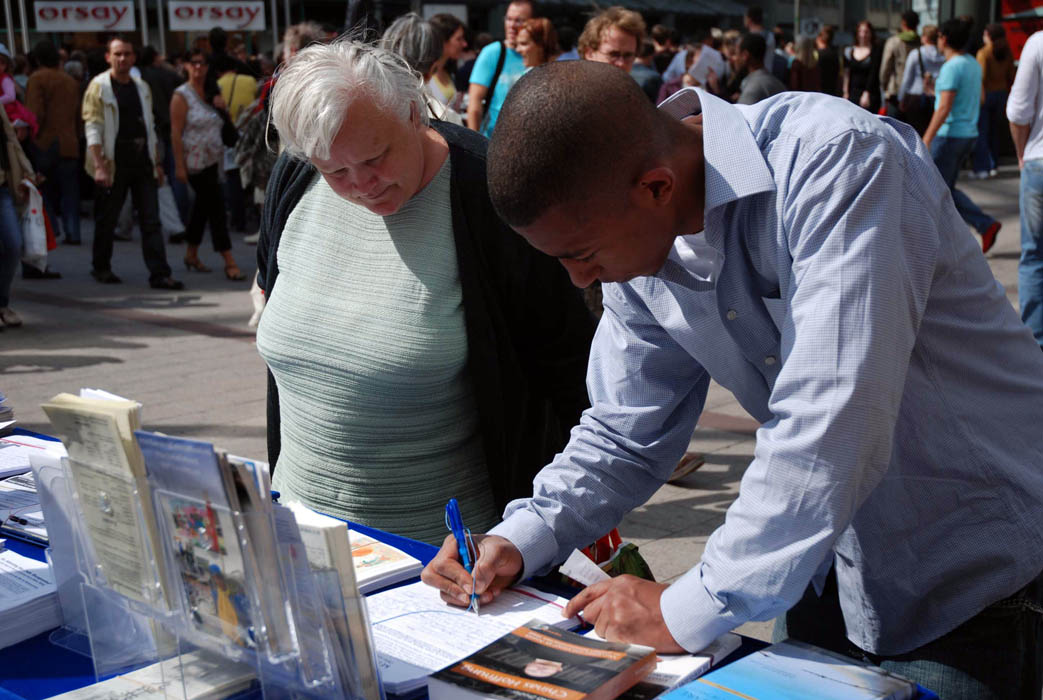 ![]() 维尔茨堡民众签名制止中共迫害法轮功 |
