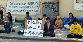 ![]() 纪念4•25和平上访十周年,在慕尼黑中领馆前,法轮功学员呼吁制止中共迫害。 |