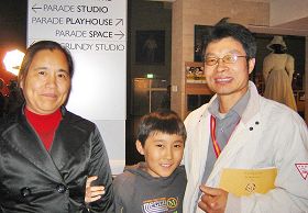 ![]() 惠女士一家在观看完神韵演出后在广告牌前留影纪念。 |