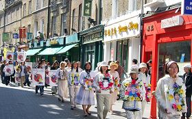 ![]() 游行队伍行至伦敦中国城 |