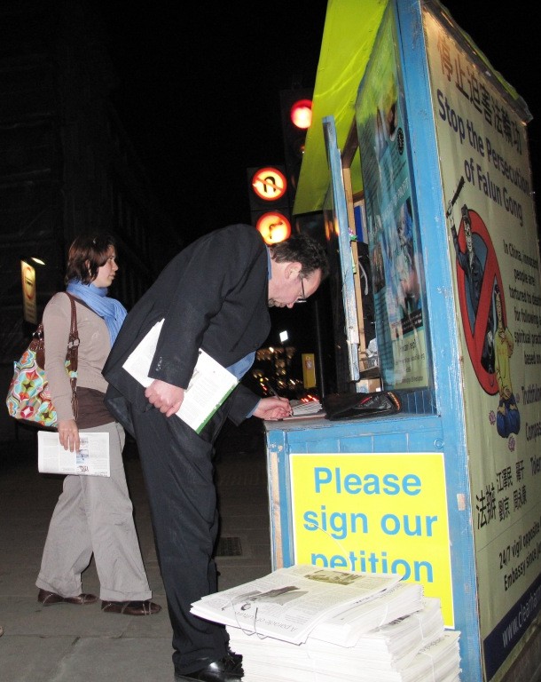![]() 人们在请愿表上签名支持法轮功反迫害 |