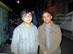 ![]() 两位印巴裔年轻人表示支持法轮功 |