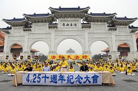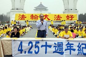 ![]() 千名法轮功学员在台北市“自由广场”前举行“四•二五十周年纪念大会” |