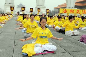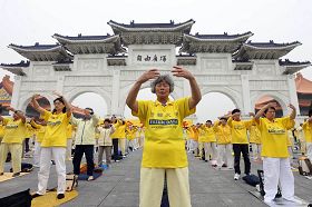 ![]() 千名台湾法轮功学员在自由广场炼功,纪念四•二五十周年 |