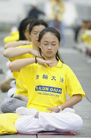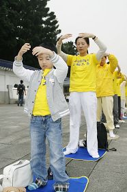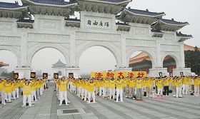 ![]() 台湾法轮功学员于二零零九年四月二十五日,在自由广场举行“四·二五十周年纪念大会”及大炼功活动。 |