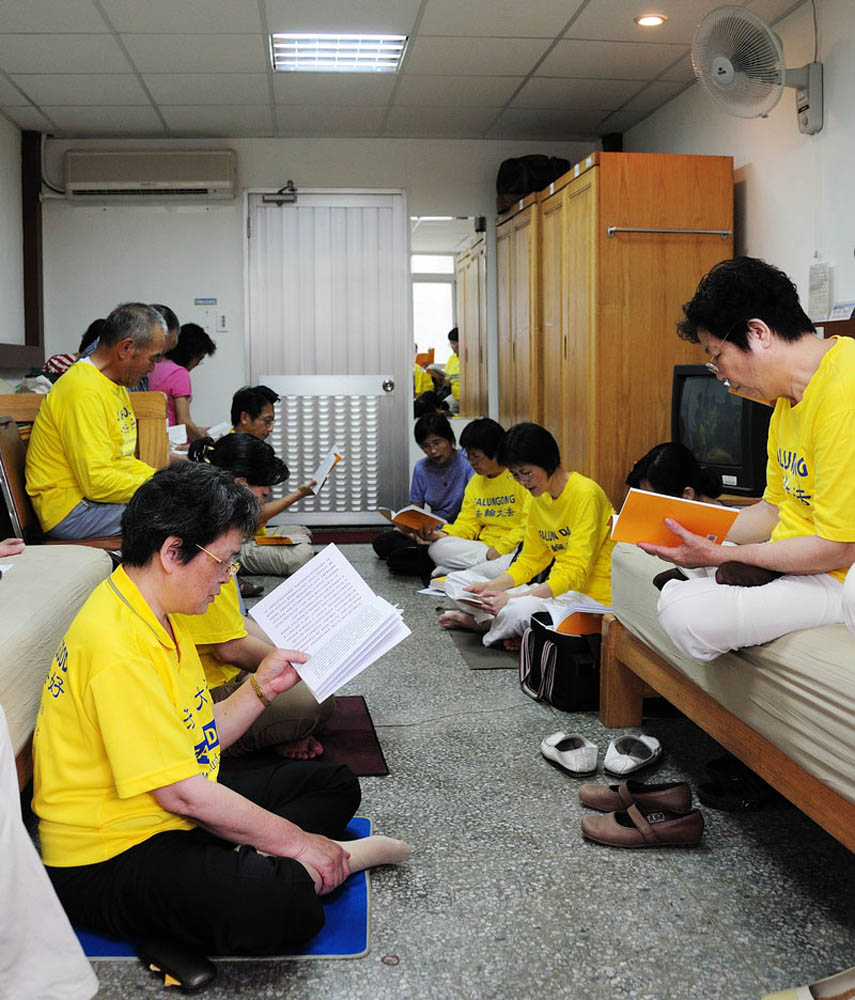 四月二十四日至二十六日台湾中区约六百位学员,从中部五县市聚集到南投中兴新村的“地方行政研习中心”来参加集体读书、交流。这些学员男女老少聚在研习中心的房间中一起读书,互相交流修炼中的心得体会,有七、八十岁精神饱满的老先生、老太太,也有六、七岁已经能通读《转法轮》的小朋友。来自社会各阶层、各行业的学员,聚精会神的读着书,并分享日常修炼的点滴。主办此次活动的学员庄先生表示,有些学员到香港、台北参与当地纪念“四•二五”的活动,否则还会有更多学员来参加。