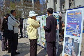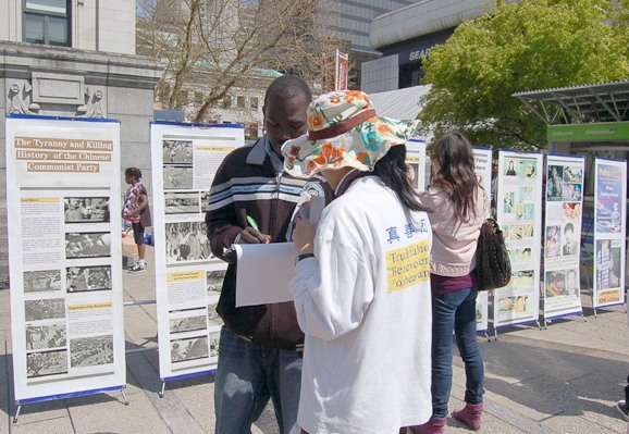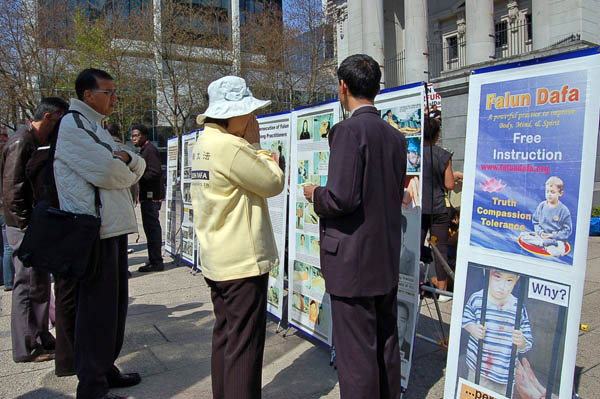 二零零九年四月二十六日,加拿大温哥华法轮功学员在市中心艺术馆前,举办图片展、征签,继续揭露中共迫害,遇到了许多感人的故事。