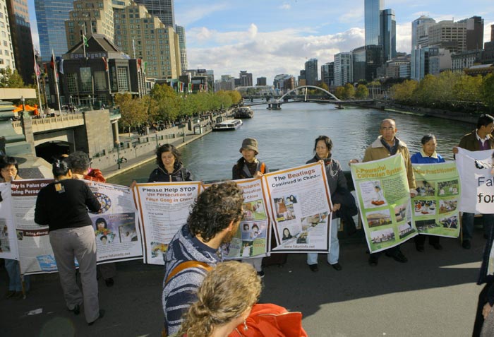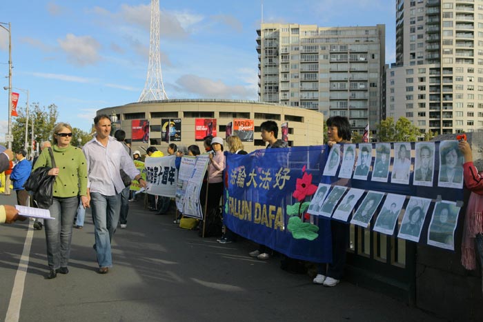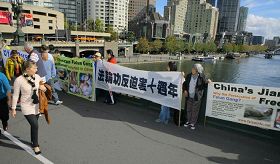 ![]() 墨尔本市法轮功学员以横幅筑起真相墙,揭露中共迫害 |