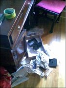 恶警把家中弄得乱七八糟,窗户开着,灯打着,门四敞大开就扬长而去。大法弟子的私人物品(一台电脑、两台刻录机、一些空光盘、电子书、大法书籍、师父法像、MP4这些都是大法弟子用自己的钱买来的)被抢走,到现在这些东西在哪都不得而知。