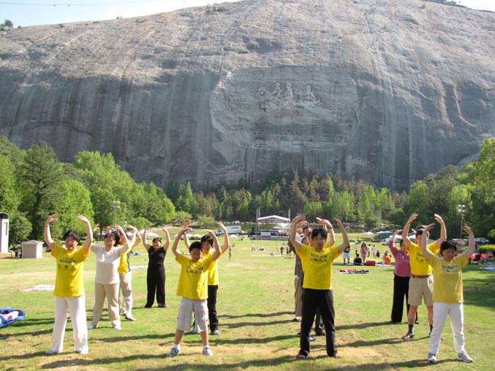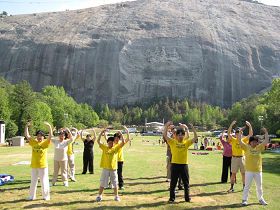 ![]() 亚特兰大法轮功学员在石头山前集体炼功 |
