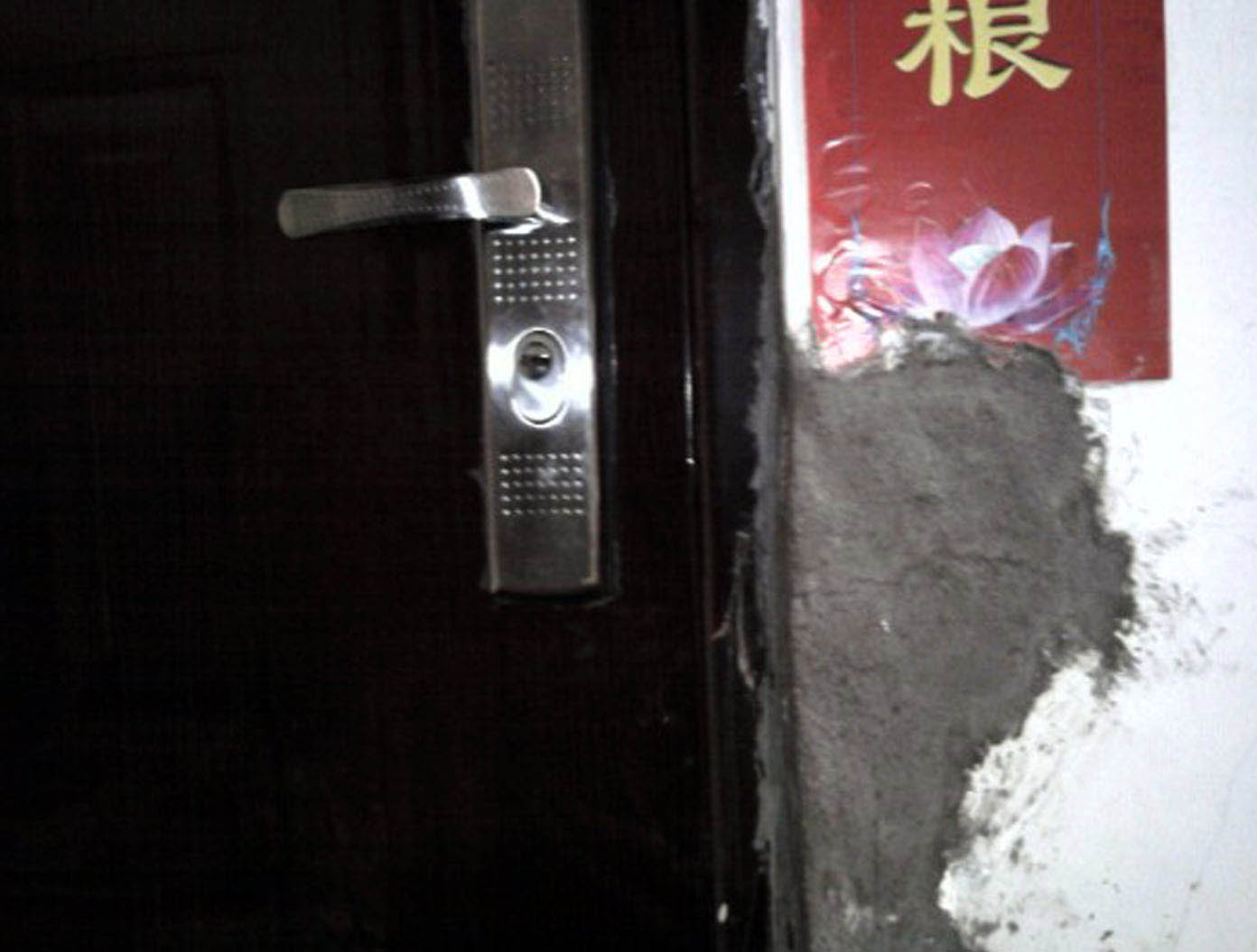 ![]() 康爱民儿子家被恶警破坏的门边墙 |