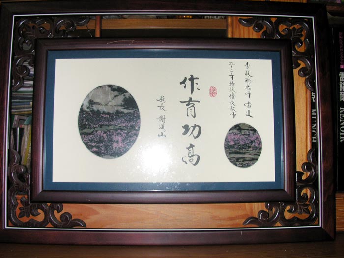 ![]() 二零零七年曹庆聪荣膺永和市“模范父亲”的匾额 |