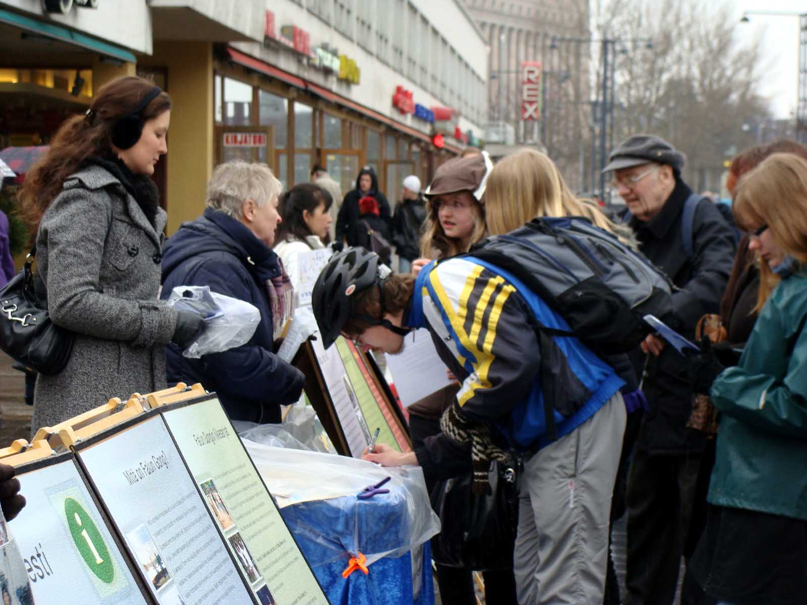 ![]() 芬兰民众排队签名声援法轮功反迫害 |