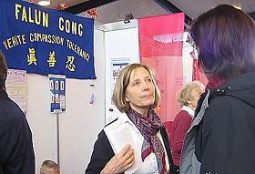 四天来,数以千计的人参观了健康展览,许多人看到了法轮功学员祥和的功法演示,来到法轮功学员的展位了解真相,索取资料。