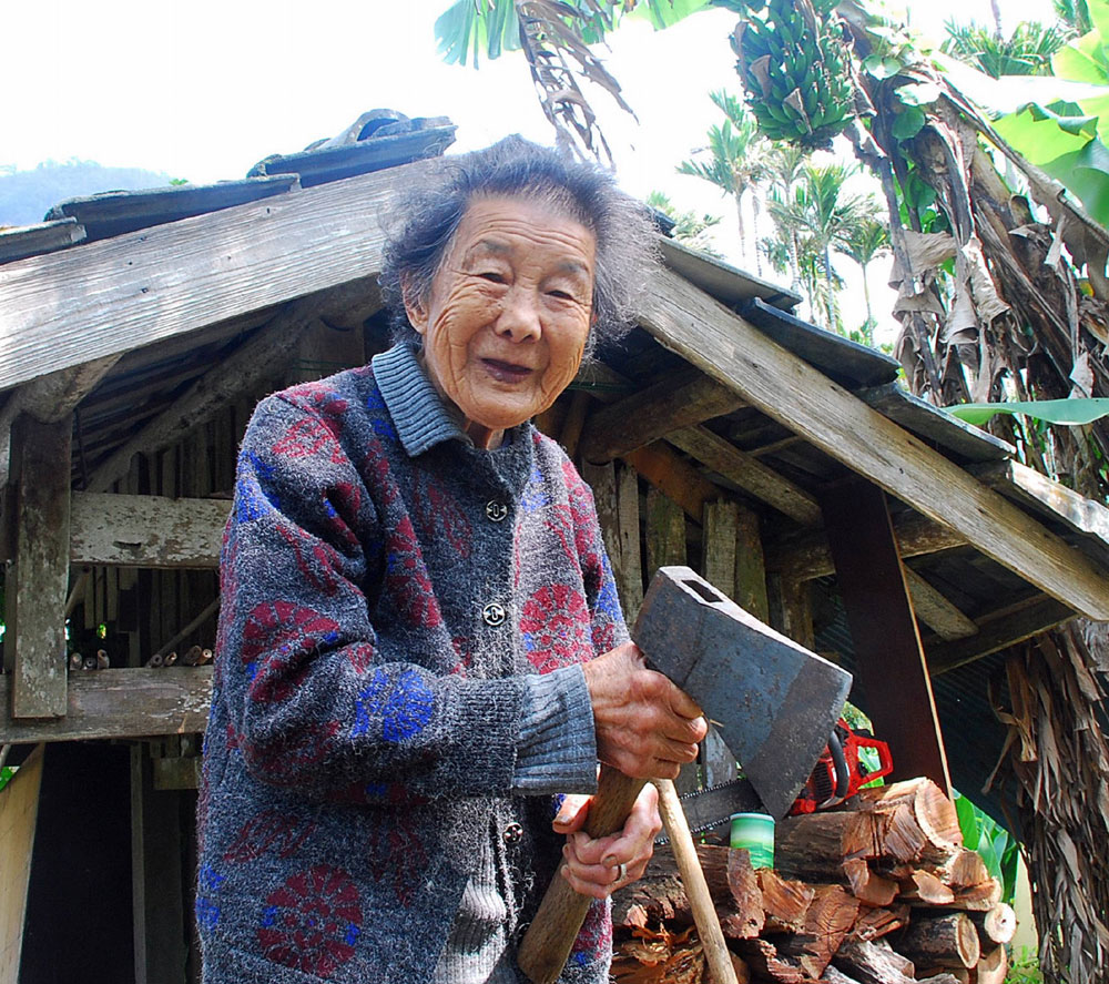 ![]() 九十一岁的阿嬷还做家事,拿斧头劈柴,神清气爽 |