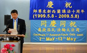 ![]() 新西兰法轮大法协会负责人于景方致辞 |
