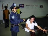 ![]() 真人模拟酷刑展,包括灌食、上吊架、钉竹签、坐老虎凳、蹲囚笼等,逼真的展现了中国法轮功学员遭受的非人折磨 |