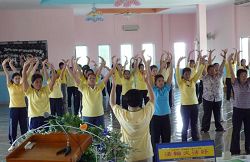![]() 二零零八年四月二十六日,泰国法轮功学员到曼谷Tanintornwittaya幼儿及少儿学校给教师洪法教功 |