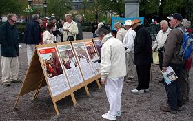 西人法轮功学员Mats也表示,现在瑞典人对法轮功的态度有了很大的改变,原来有些人好象不太关心此事,现在越来越多的人都想来了解法轮功,大家对中共的暴行很愤慨。在持续十年、这么残酷的迫害下,炼法轮功的人数越来越多,这引起了很多瑞典人的思考。现在很多人都不是接下传单就走了,他们大多是要主动问问,想听听更多有关法轮功的信息。