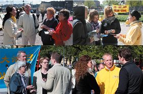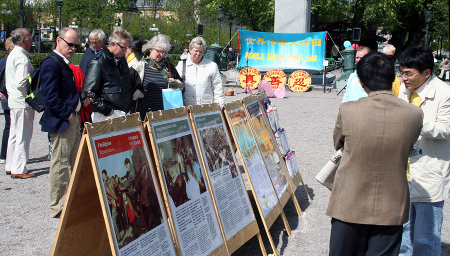 纯朴善良的瑞典人很珍惜和法轮大法的万古机缘,这些在大法中受益的法轮功学员,看到中共自一九九九年“七•二零”以来对法轮功发动的这场残酷的迫害,导致数以万计的修炼人被非法监禁,至少三千多人失去生命,长达十年的这场迫害并未结束,心情很沉重。为了让更多的人了解法轮功,揭露中共欺骗世人的谎言,十年来他们珍惜每一次机会,坚持不懈地向世人讲清法轮功受迫害的真相。