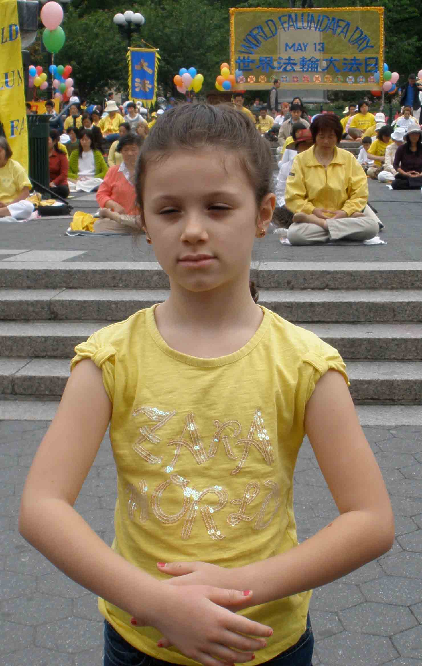 小女孩莱尔(Laelle)也被这场景深深的吸引,自然而然地跟着学炼起来。她说:“这个音乐太美好了,让我非常的放松。我轻轻的闭上双眼,立即就觉的一种温暖的东西环绕着我,我就象睡着了似的,但是我却清楚地知道我站立在地上。我感到非常美好。”