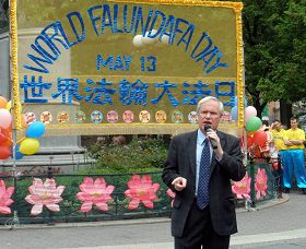 纽约市议员、市长候选人托尼•艾维拉先生(Tony Avella)特别表示:能够在这个世界法轮大法日来表达对法轮功的支持,这是自己莫大的荣幸。“作为纽约市议员和市长候选人,我坚定地反对中共对法轮功学员的迫害。我注意到,中共不仅在中国对法轮功学员进行残酷的迫害,而且一直在试图把这种迫害延伸至美国。这是绝对不能容许的!”他说:“我要说,如果我当选纽约市长,我要确保纽约的每一家公司都不得与中共往来,除非它结束对法轮功的迫害。”