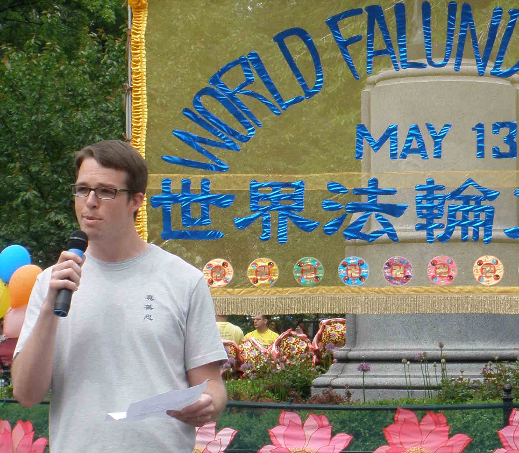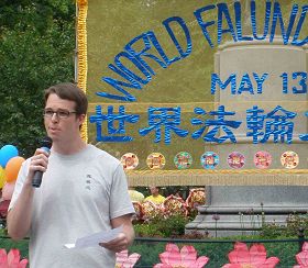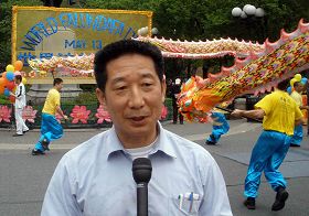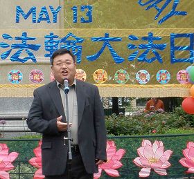 太太修炼法轮功、但是本人尚未修炼的李先生,每次总是陪伴着太太参加类似这样的活动。李先生说:“我觉的‘世界法轮大法日’非常重要,因为这是李洪志老师的生日,又是法轮大法洪传开始的日子。应该进行更大规模的庆祝活动,让纽约所有的人都知道法轮功教人‘真、善、忍’。”李先生还说:“除了宣扬‘真、善、忍’,还有更重要的一点,就是要告诉全世界:中共在残酷迫害法轮功,中共的迫害违反人道、天理。”