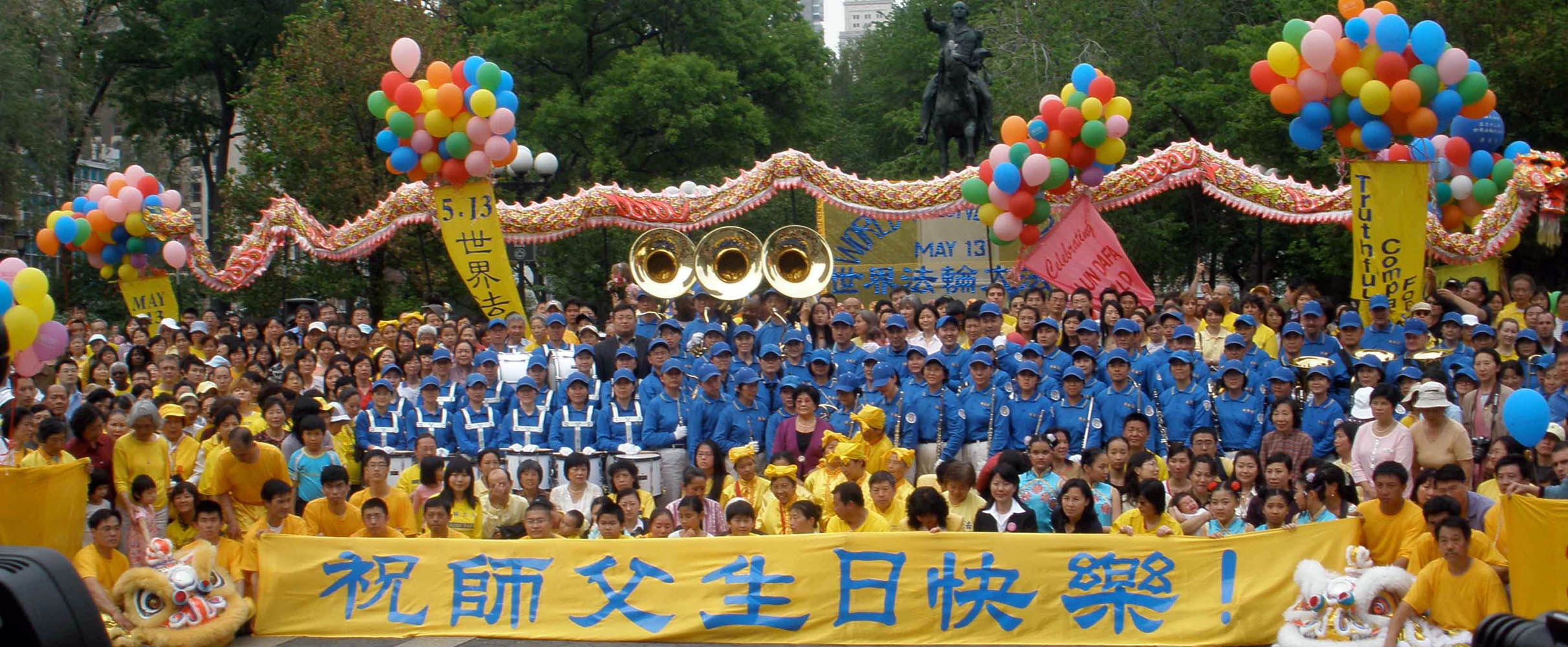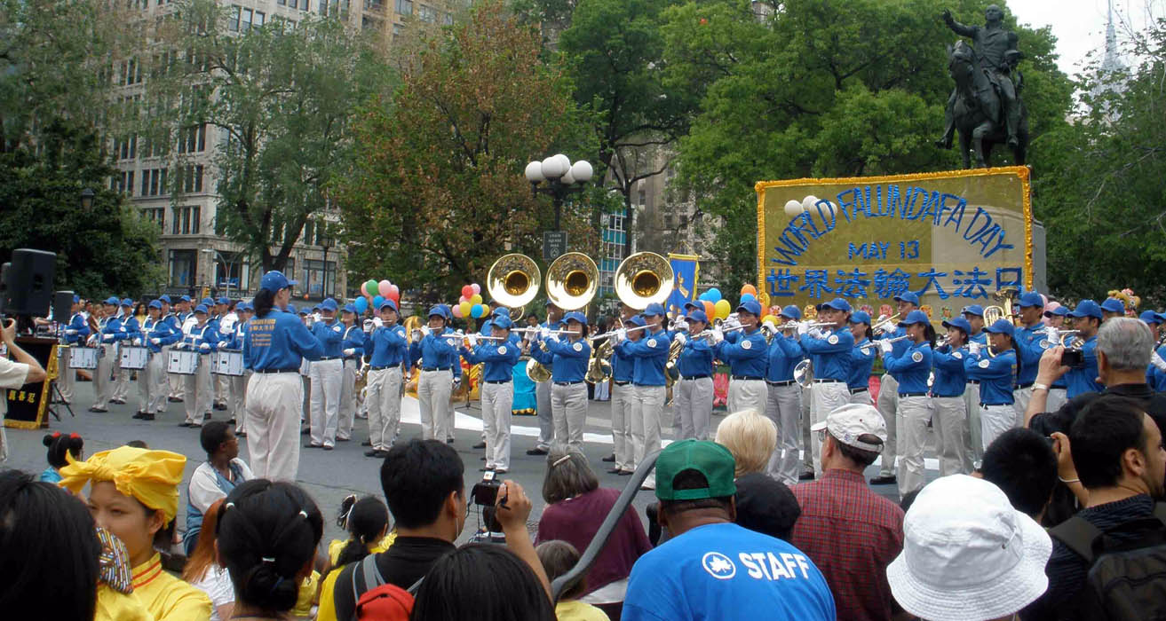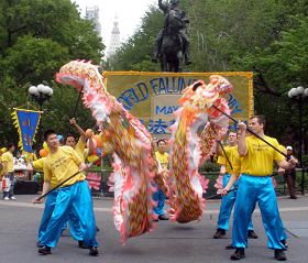 ![]() 纽约法轮功学员集体炼功,庆祝世界法轮大法日 |