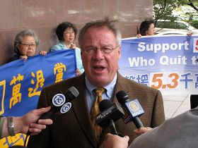俄亥俄州特来多市市议员麦克•柯林斯(D.Michael Collins)在五月九日特来多市的集会上发言,并接受了当地媒体十三频道、FOX电台和新!唐!人:电视台的联合采访。他说:“当我听到中国人退!党!的活动时,我觉得我并不惊讶,我觉得我了解中共;但当我真正和他们交谈后,我才知道关于迫害,关于在中国不止一个的受迫害团体所正在承受的境况,我非常惊讶,也非常难过,所以我站出来支持他们。坦白地讲,我认为整个世界都应该站出来!(Frankly say, the world should stand up!)”