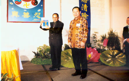 ![]() 二零零四年九月十二日,印尼法会在雅加达召开。印尼旅游局局长向法会致贺,前国家政协副主席首次出席法轮功交流会。 |