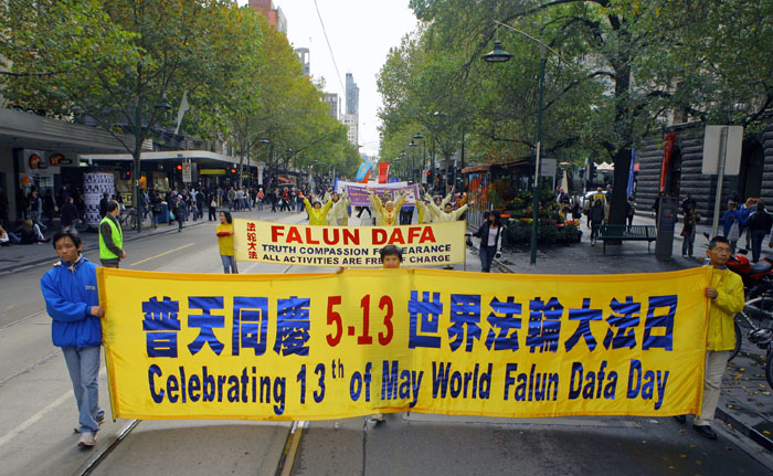 ![]() 二零零九年五月九日,墨尔本法轮功学员举行盛大游行庆祝法轮大法洪传十七周年。 |