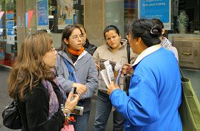 ![]() 路人聚精会神地听法轮功学员讲真相 |
