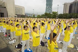 ![]() 二零零八年十一月四日,近三千名台湾法轮功学员在台北自由广场前炼功 |